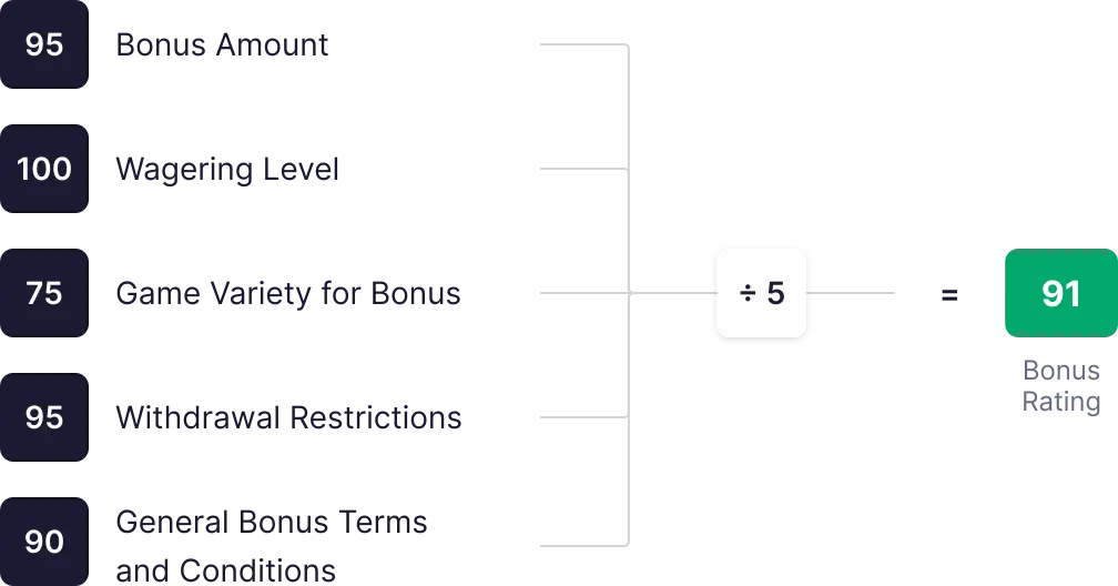 | ウェルカムボーナスおよび限定ノーデポジットボーナスを、平均またはそれ以下の条件で提供している場合。 | 100 |
