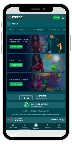 22Casinoレビュー: このレビューを作成する際、デスクトップ版とモバイル版の両方を注意深く調べました。一見デザインは少し古いように見えるかもしれませんが、機能性は完璧に動作します。