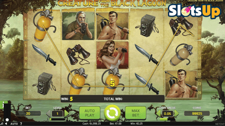 ネットエント社のCreature From the Black Lagoonは、5リール、3列に配置され、20の固定ペイラインがあります。