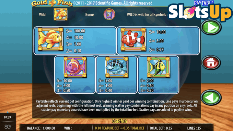 ゴールドフィッシュフィーチャー: このボーナスでは通常5回から20回のフリースピンを獲得できます。